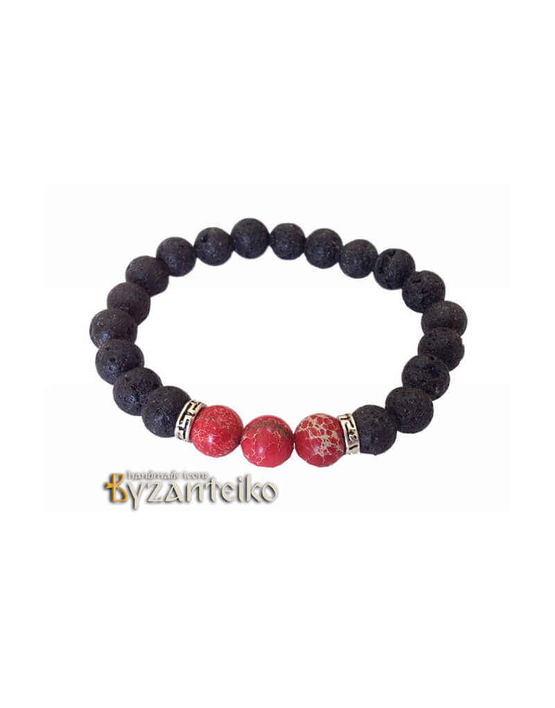 Βραχιόλι Λάβα με Κόκκινη Πέτρα