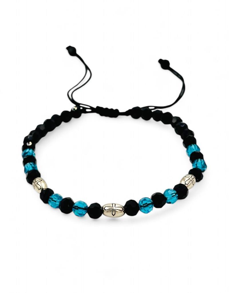 Βραχιόλι ξύλινο μακραμέ με σταυρό