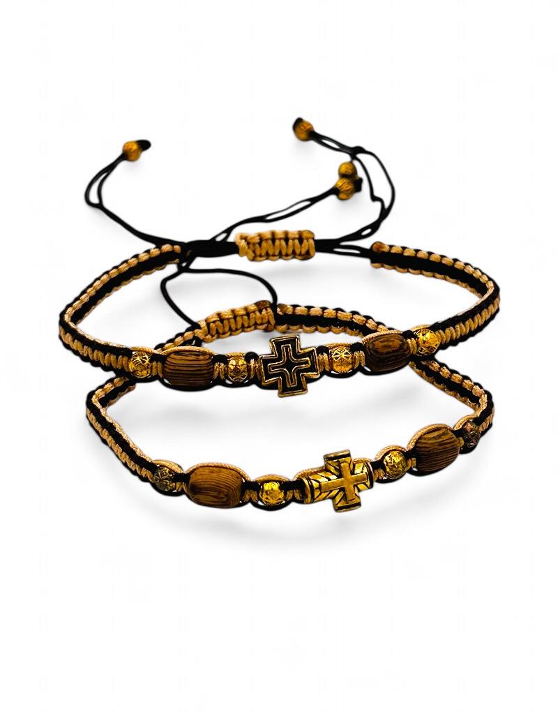 Βραχιόλι ξύλινο με σταυρό αιματίτη
