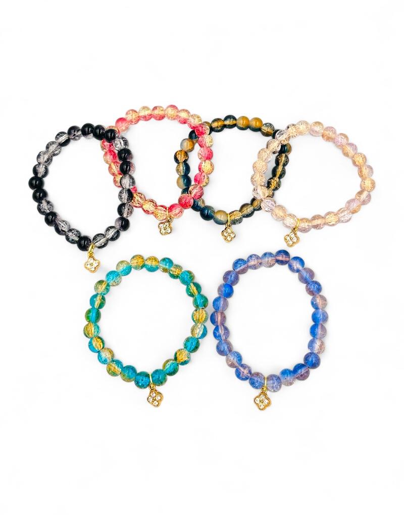 Βραχιόλι με γυάλινες χάντρες κρακελέ και σταυρό