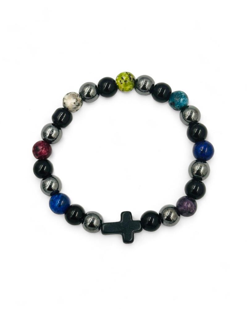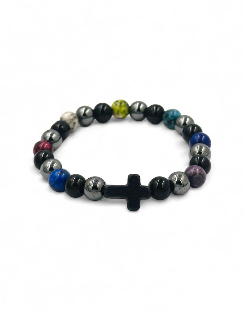 Βραχιόλι με ημιπολύτιμες πέτρες και σταυρό