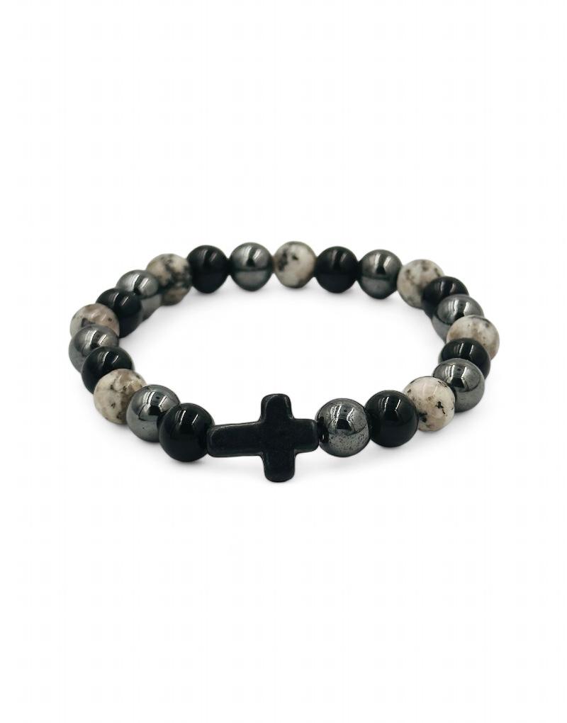 Βραχιόλι με ημιπολύτιμες πέτρες και σταυρό