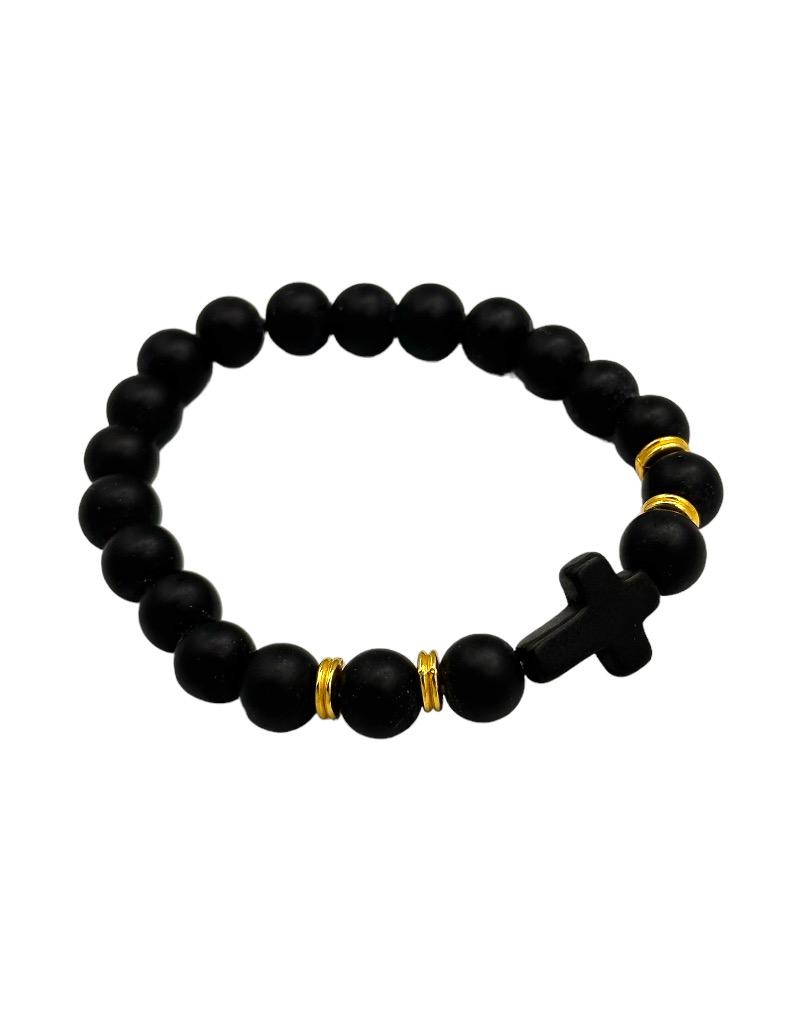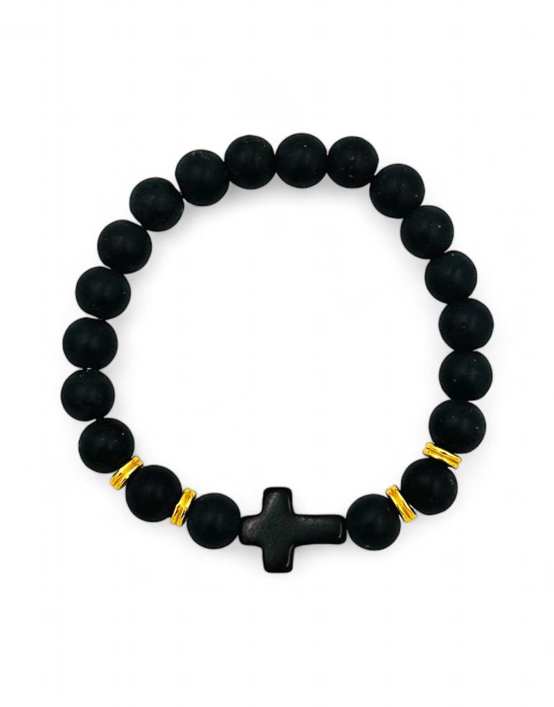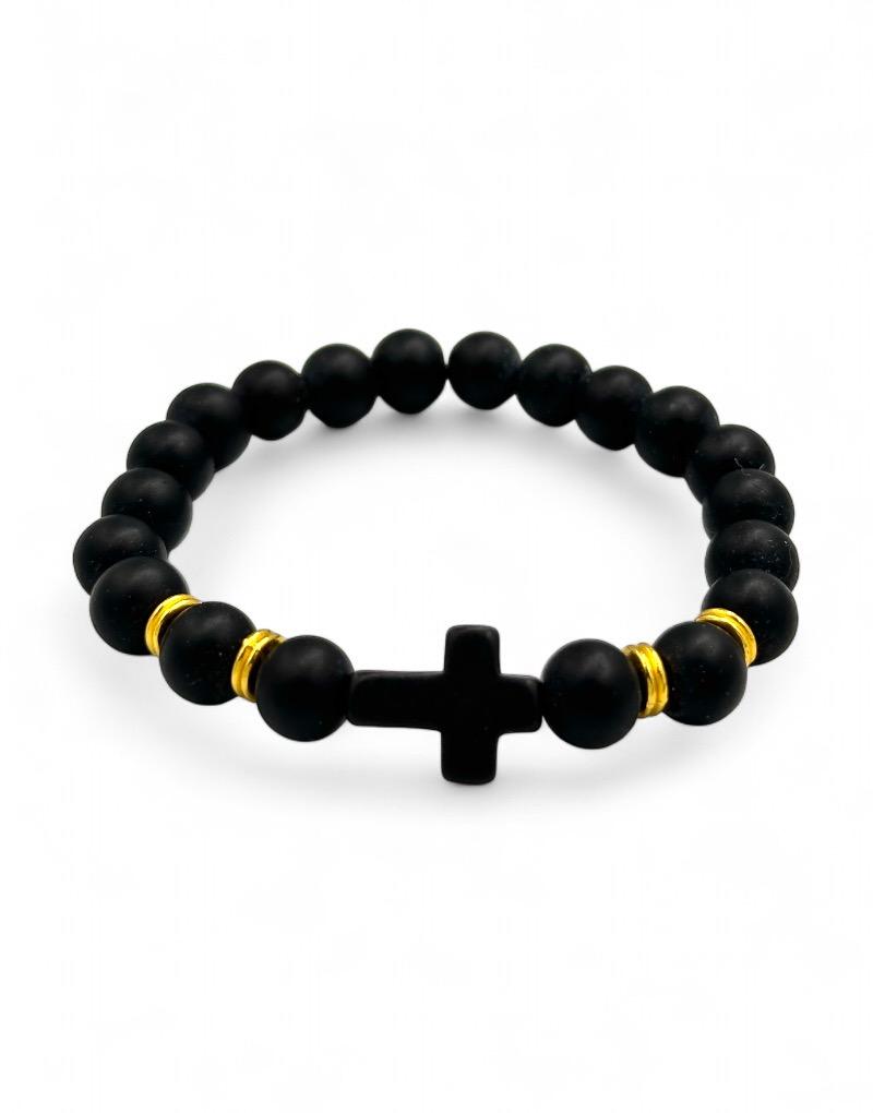 Βραχιόλι με μαύρες χάντρες και σταυρό