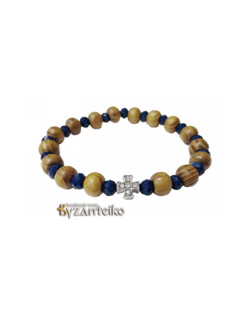 Βραχιόλι με ξύλινες χάντρες και κρύσταλλα.