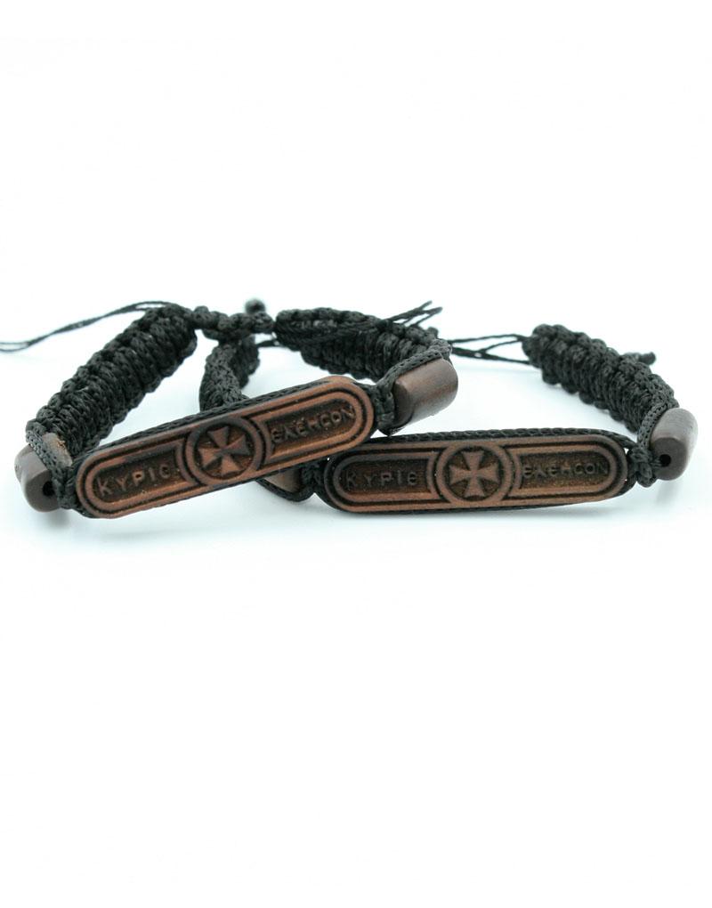 Βραχιόλι ξύλινο μακραμέ “Κύριε Ελέησον”