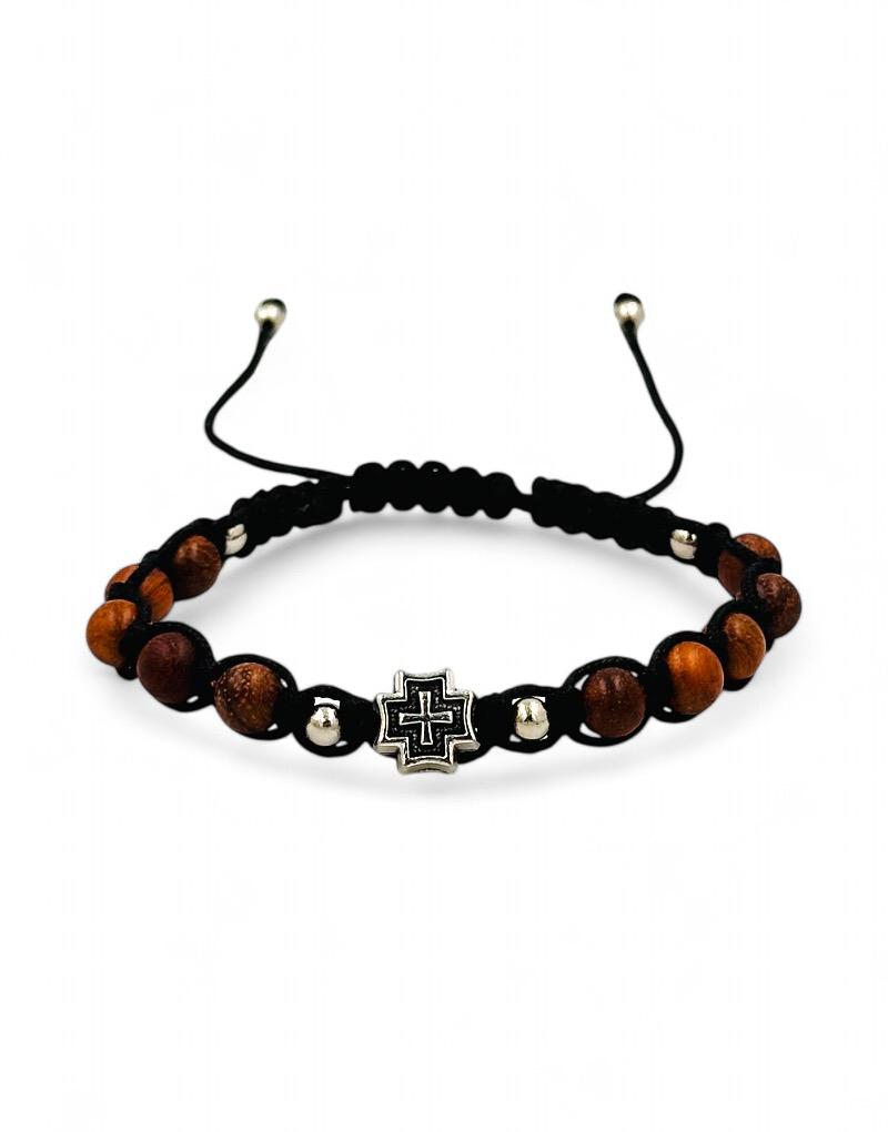 Βραχιόλι ξύλινο με σταυρό αιματίτη