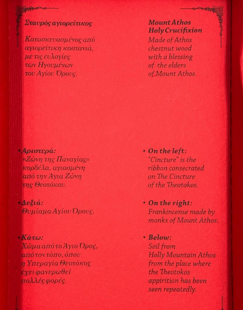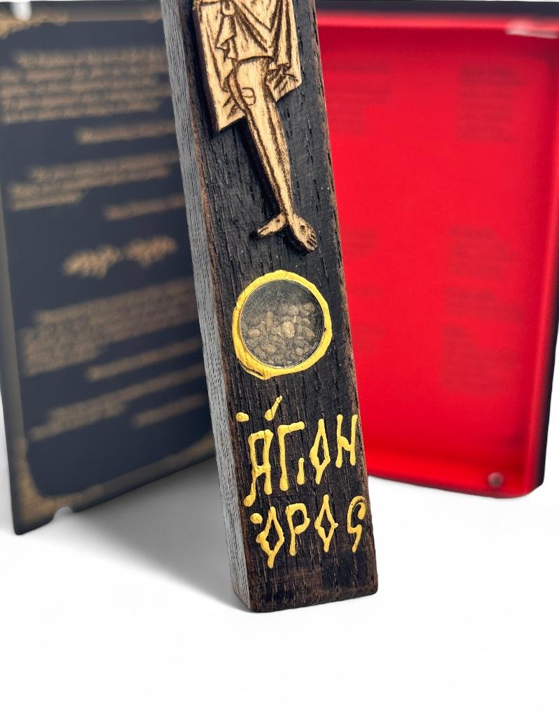 Includes blessed ribbon, frankincense, and soil with symbolic meaning from Athonite monasteries