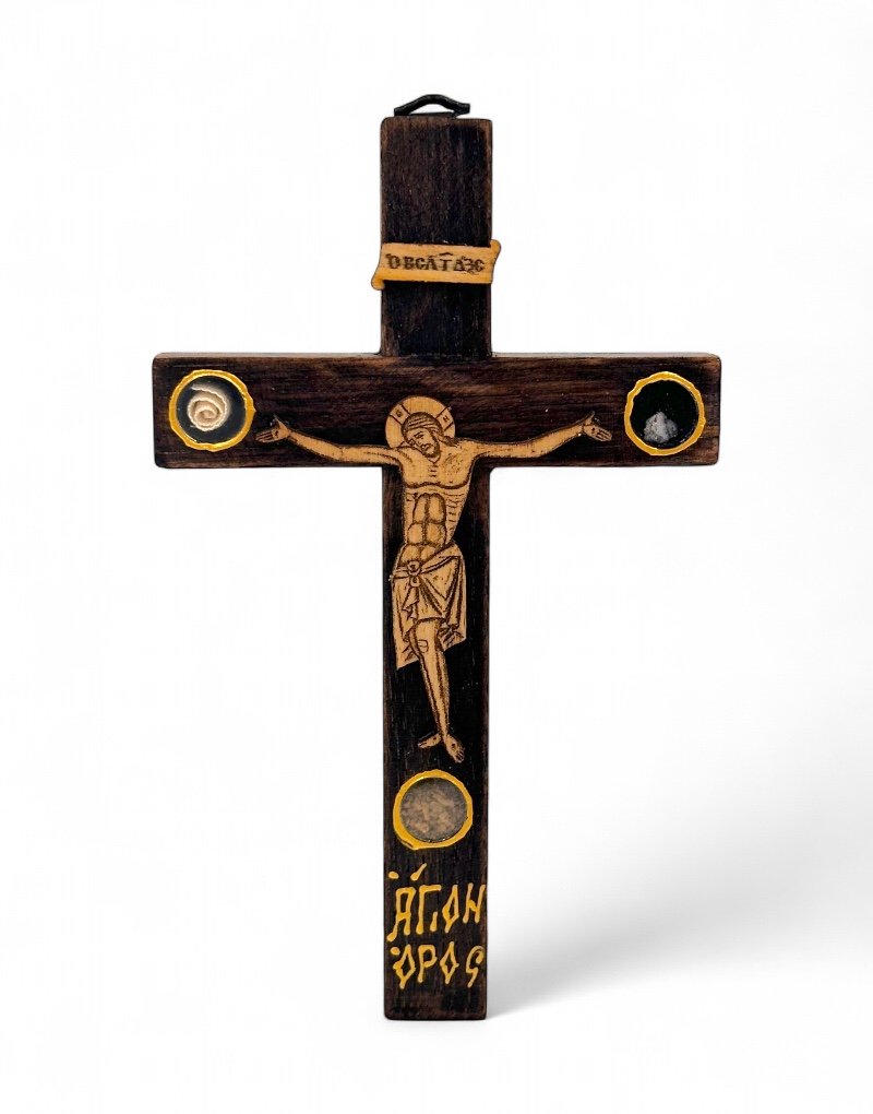Wooden Cross with Holy Items – Handcrafted on Mount Athos