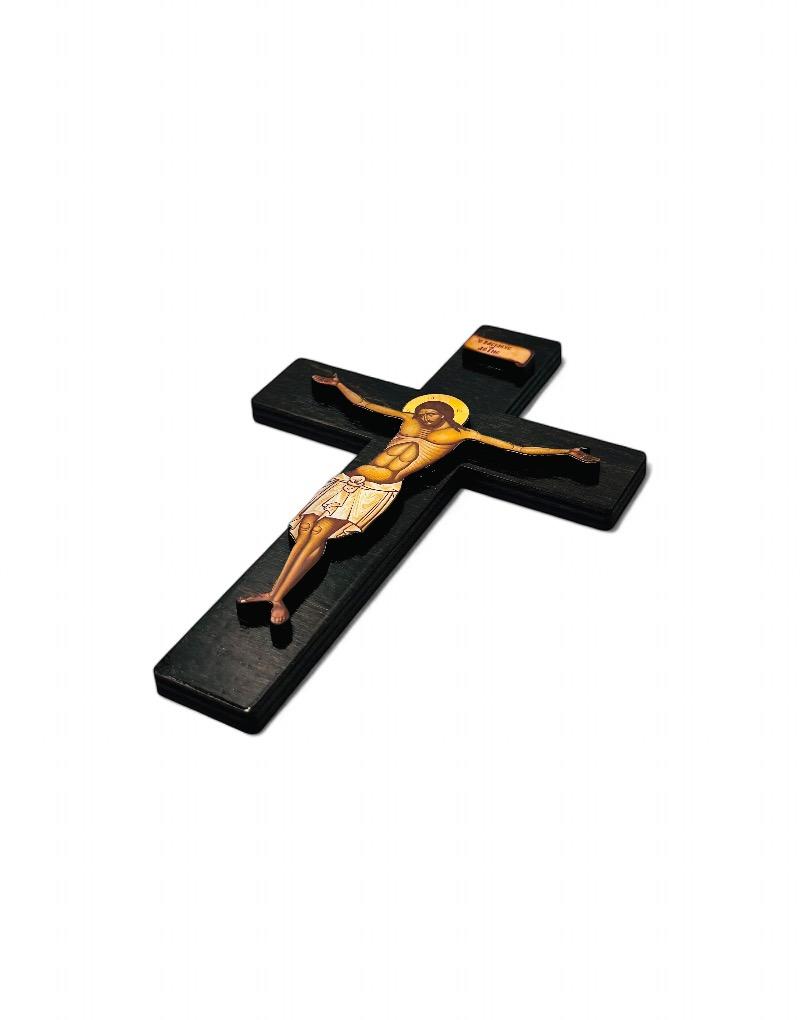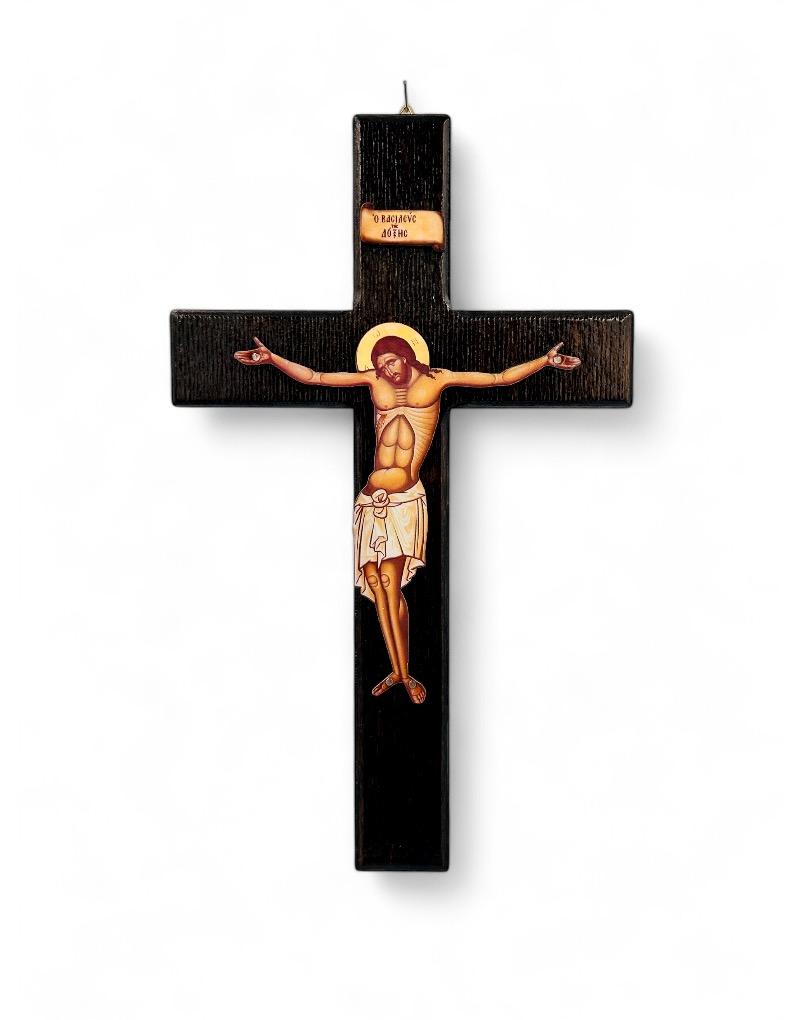 Ένας κομψός ξύλινος σταυρός χειροποίητος που αποπνέει πίστη και πνευματικότητα. Από τη μία πλευρά, απεικονίζεται ο Εσταυρωμένος, ενώ από την άλλη, είναι σκαλισμένο το “IC XC NIKA”, προσφέροντας έναν ιδιαίτερο θρησκευτικό συμβολισμό, υπενθυμίζοντας τη νίκη του Χριστού. Αυτός ο σταυρός αποτελεί ιδανικό διακοσμητικό για κάθε χώρο προσευχής ή ευλογία στο σπίτι σας.